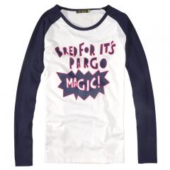 【定制】韓版印花檫肩袖長袖圓領(lǐng)T恤衫