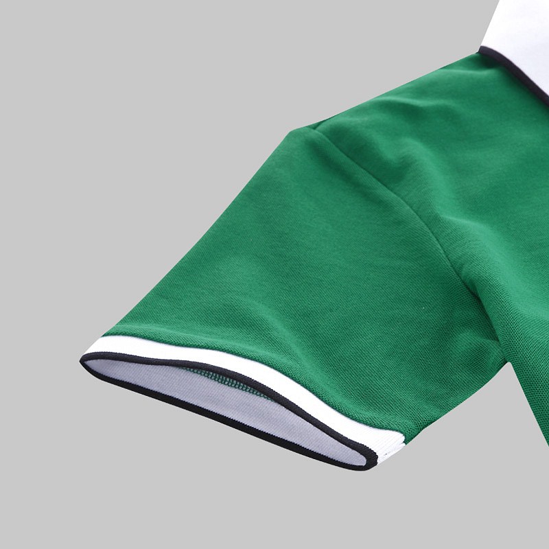 白色領(lǐng)袖撞色,男女時尚T恤款式定制,可刺繡公司標(biāo)志