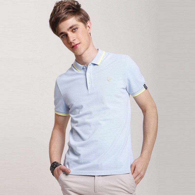 花灰色衣領(lǐng)袖口撞色,翻領(lǐng)短袖T恤衫,時(shí)尚款式定制,精梭純棉品質(zhì)