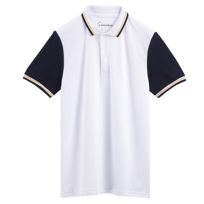 白色領(lǐng)袖撞色,男女時尚T恤款式定制,可刺繡公司標志