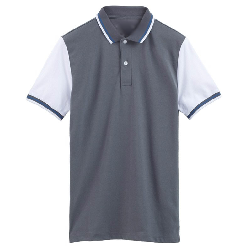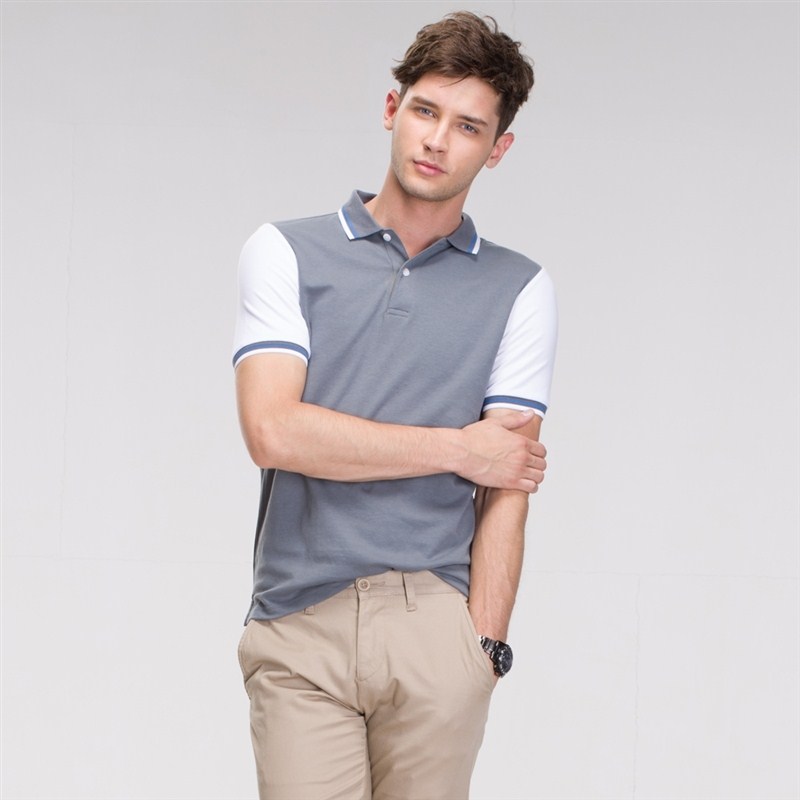 花灰色衣領(lǐng)袖口撞色,翻領(lǐng)短袖T恤衫,時尚款式定制,精梭純棉品質(zhì)