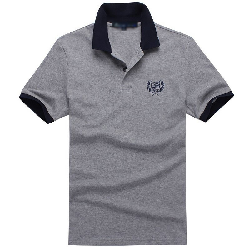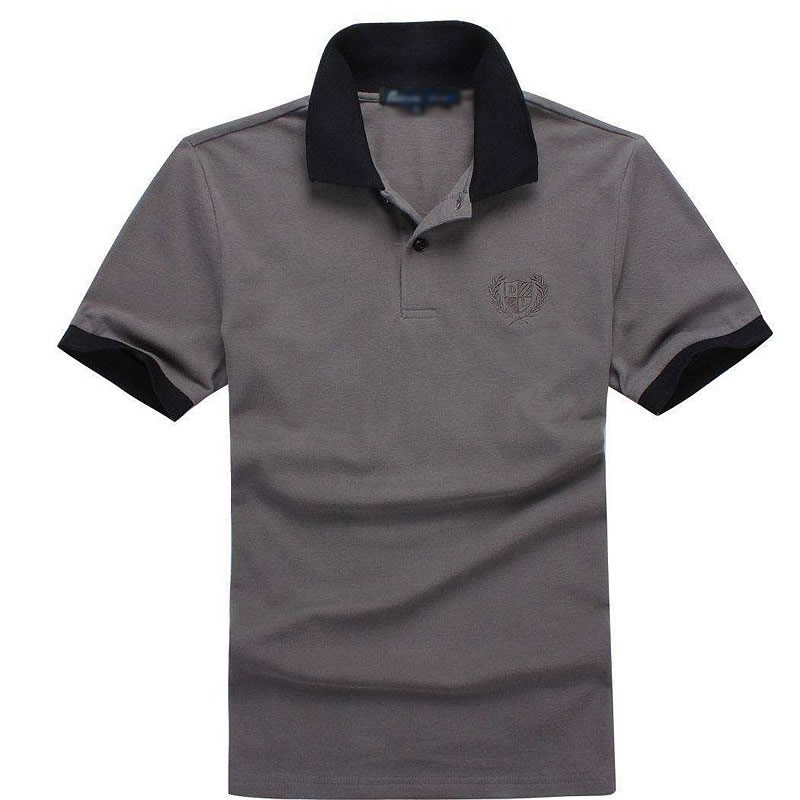 花灰色衣領(lǐng)袖口撞色,翻領(lǐng)短袖T恤衫,時尚款式定制,精梭純棉品質(zhì)