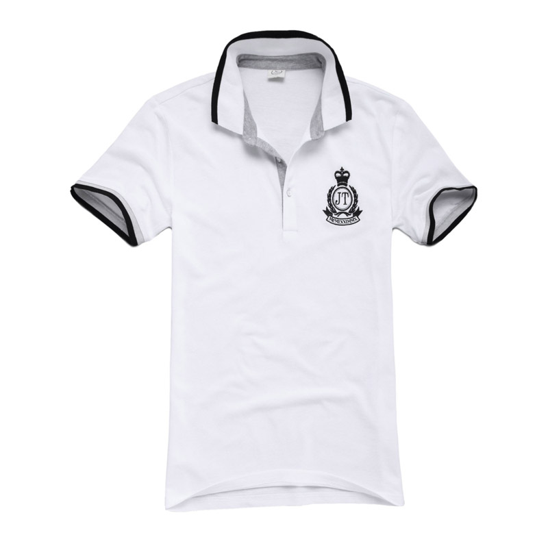 白色領袖撞色,男女時尚T恤款式定制,可刺繡公司標志
