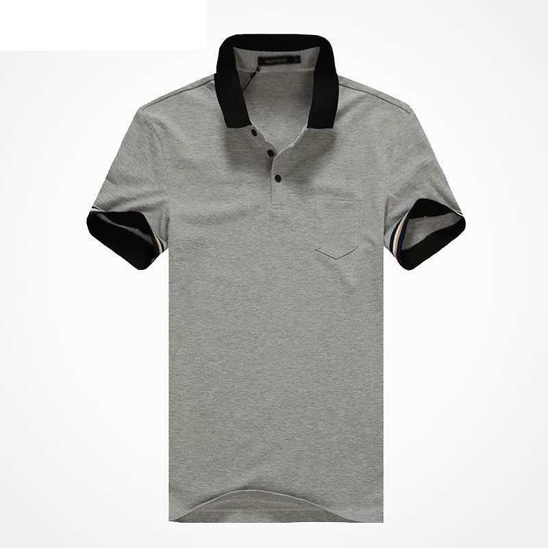 花灰色衣領(lǐng)袖口撞色,翻領(lǐng)短袖T恤衫,時尚款式定制,精梭純棉品質(zhì)