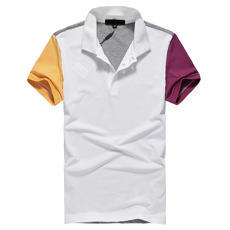 白色領(lǐng)袖撞色,男女時(shí)尚T恤款式定制,可刺繡公司標(biāo)志