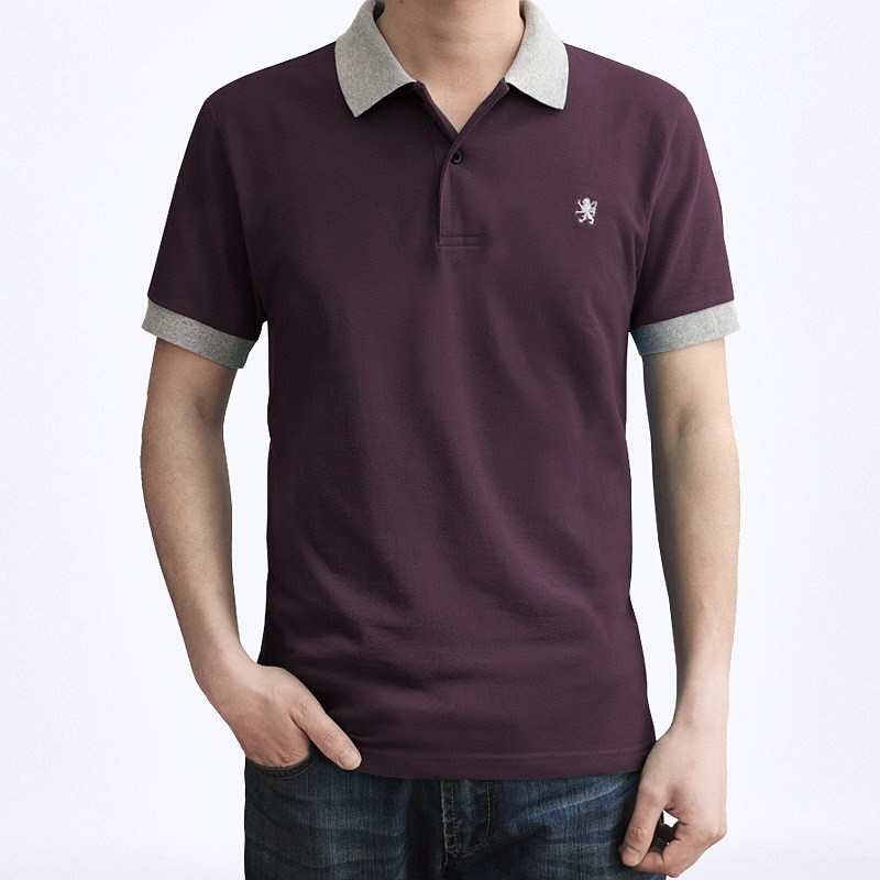 花灰色衣領袖口撞色,翻領短袖T恤衫,時尚款式定制,精梭純棉品質