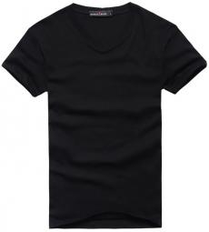 【定制】黑色韓版修身空白V領(lǐng)T恤衫