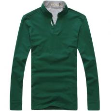 綠色男款V領(lǐng)長袖T恤衫工廠加工制作 可寄樣品
