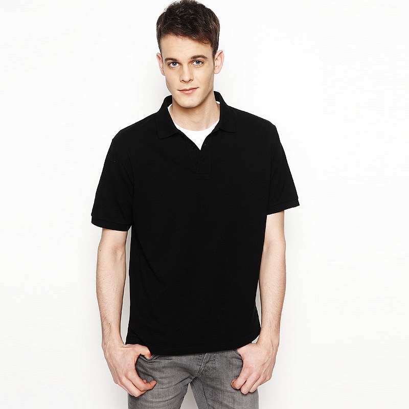 純黑色商務(wù)翻領(lǐng)T恤衫批量訂做