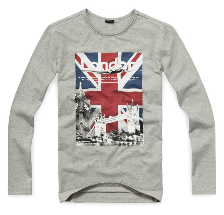 長(zhǎng)袖圓領(lǐng)灰色英倫圖案免費(fèi)印花