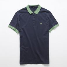 寶藍色撞色領(lǐng)袖T恤衫加工制作 免費設(shè)計服務(wù)