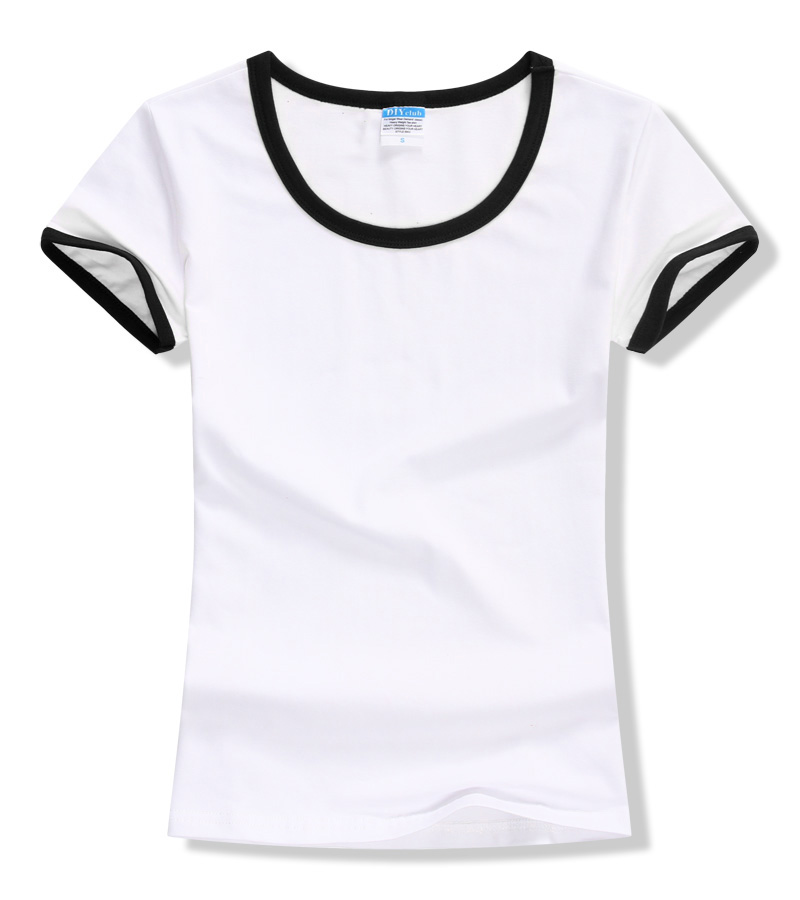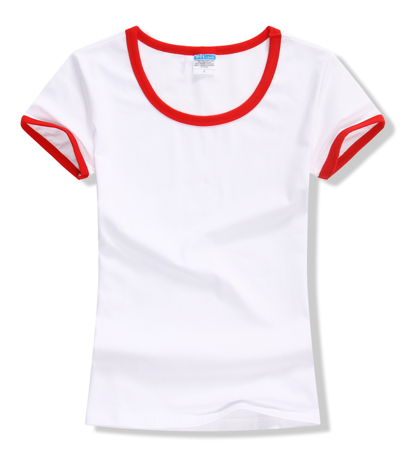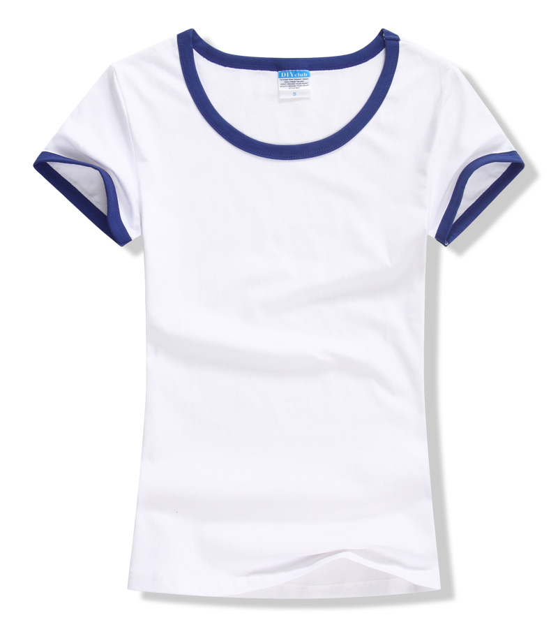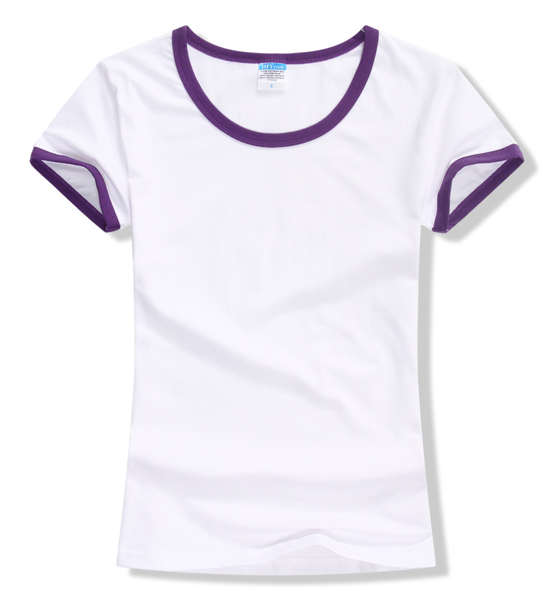 女裝圓領(lǐng)短袖T恤衫,領(lǐng)袖撞色款式,7個顏色現(xiàn)貨T恤衫批發(fā)