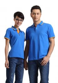 天藍(lán)色珠地棉T恤衫,領(lǐng)袖撞白色,男女時(shí)尚款定做 1