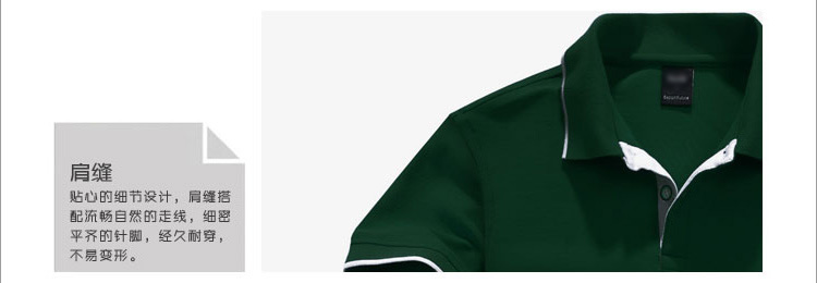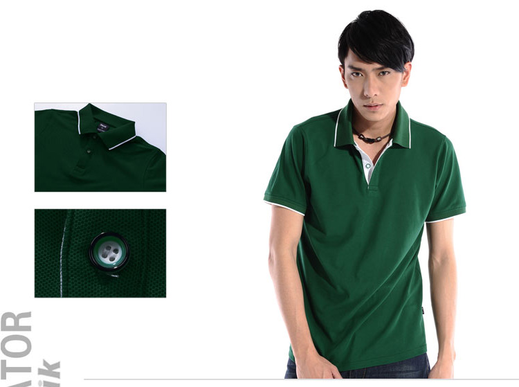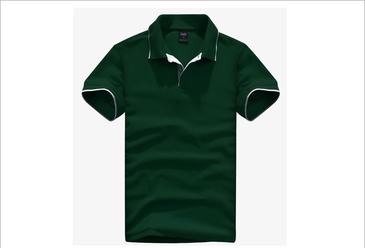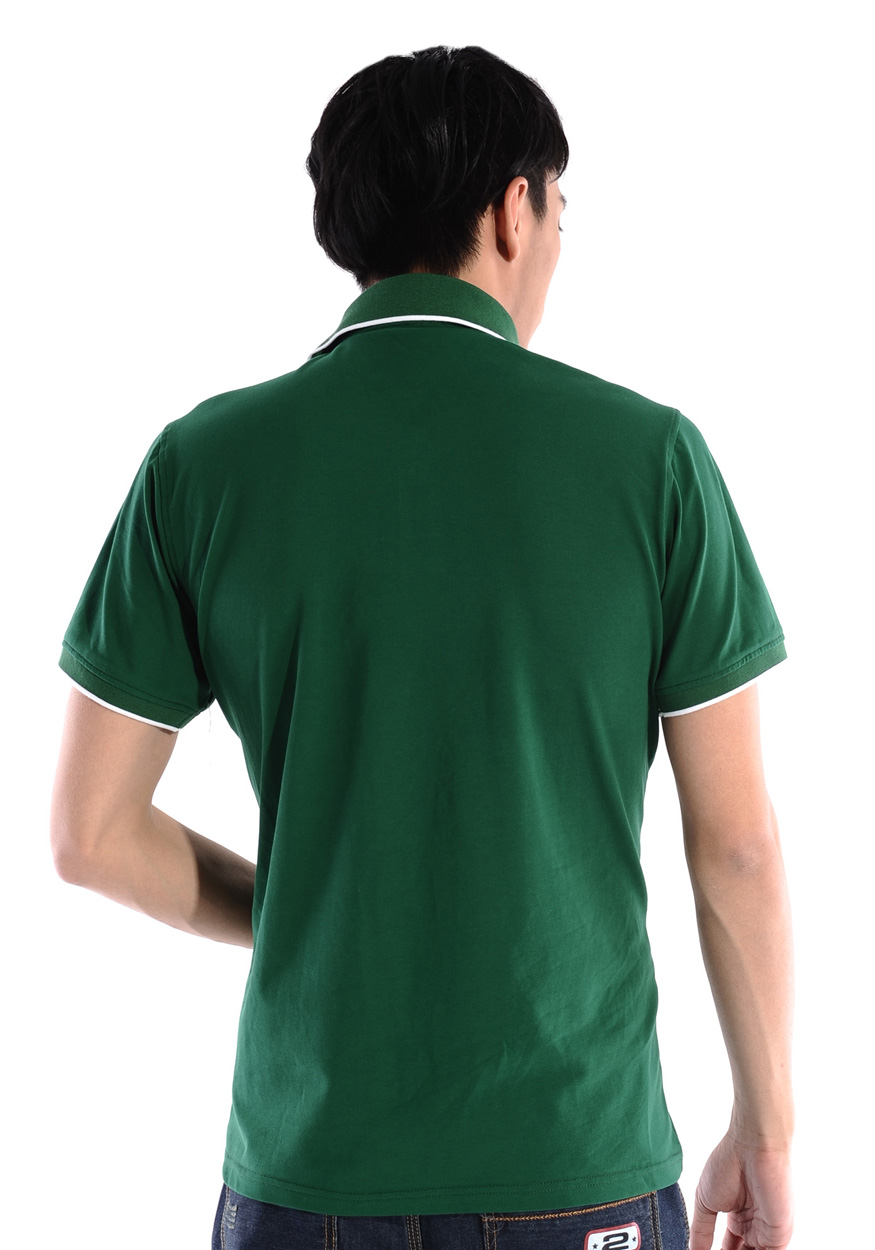> 墨綠色珠地純棉,領(lǐng)袖白色間條撞色款式定制 1