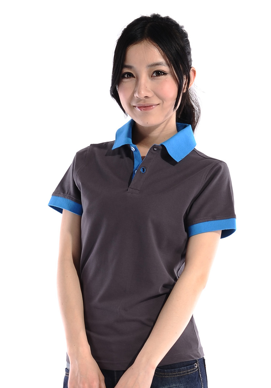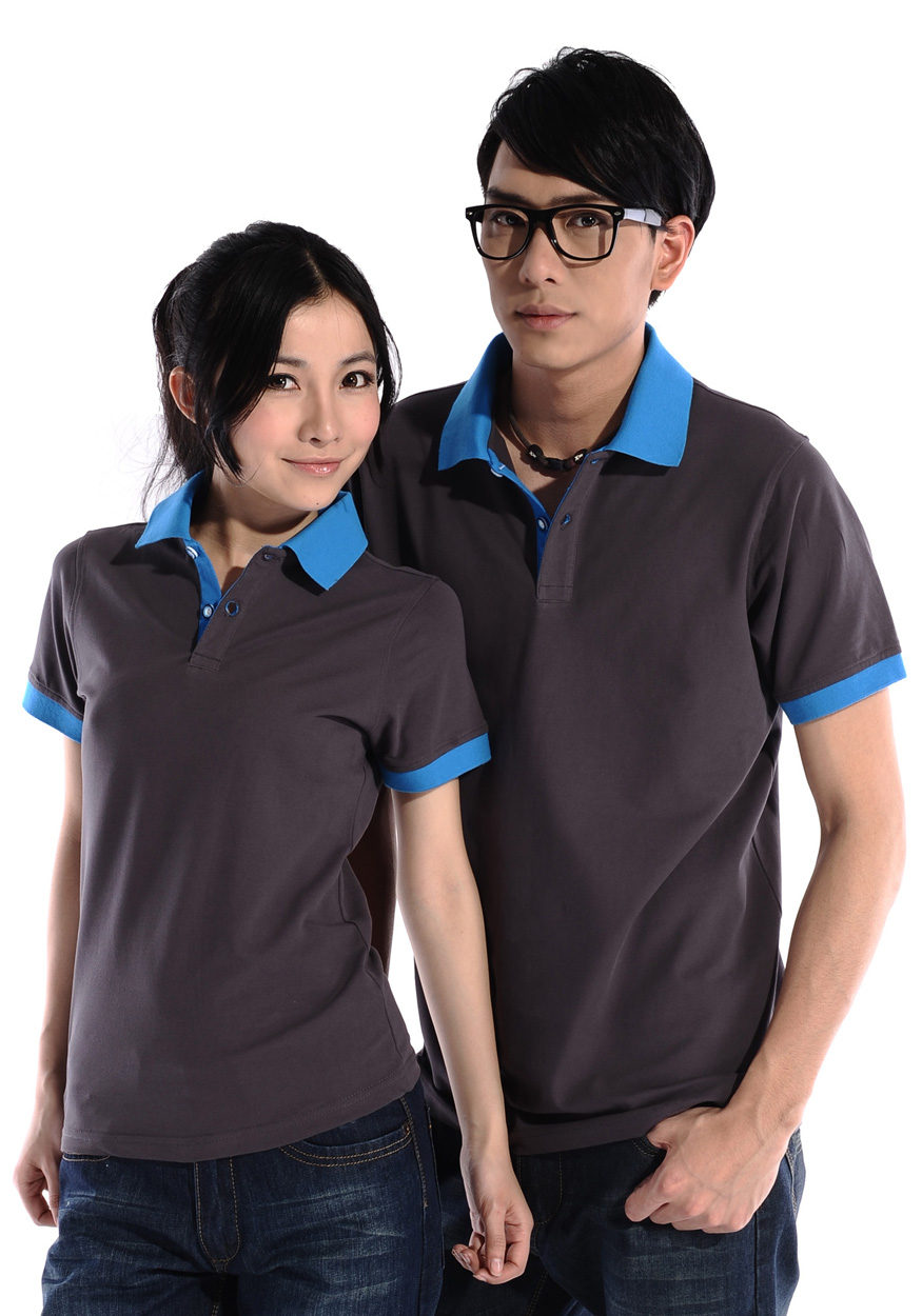 深灰色珠地棉POLO衫,領(lǐng)袖撞藍(lán)色,男女時尚款定制1