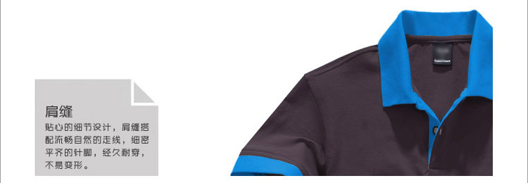 > 深灰色珠地棉POLO衫,領(lǐng)袖撞藍(lán)色,男女時尚款定制1