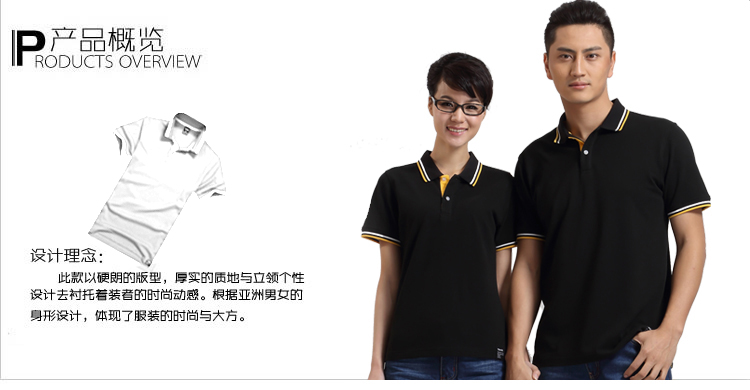 白色領(lǐng)袖撞色,男女時尚T恤款式定制,可刺繡公司標志
