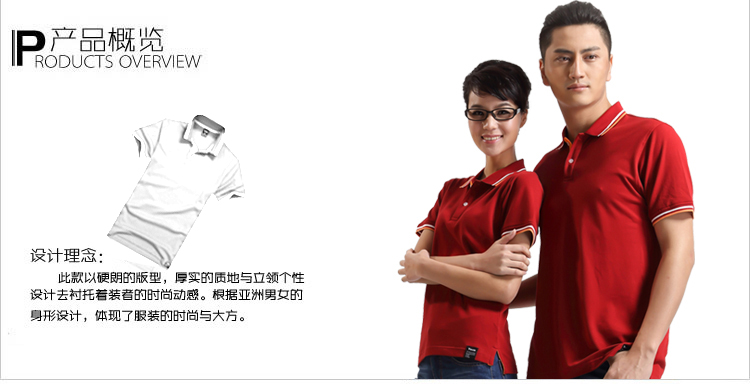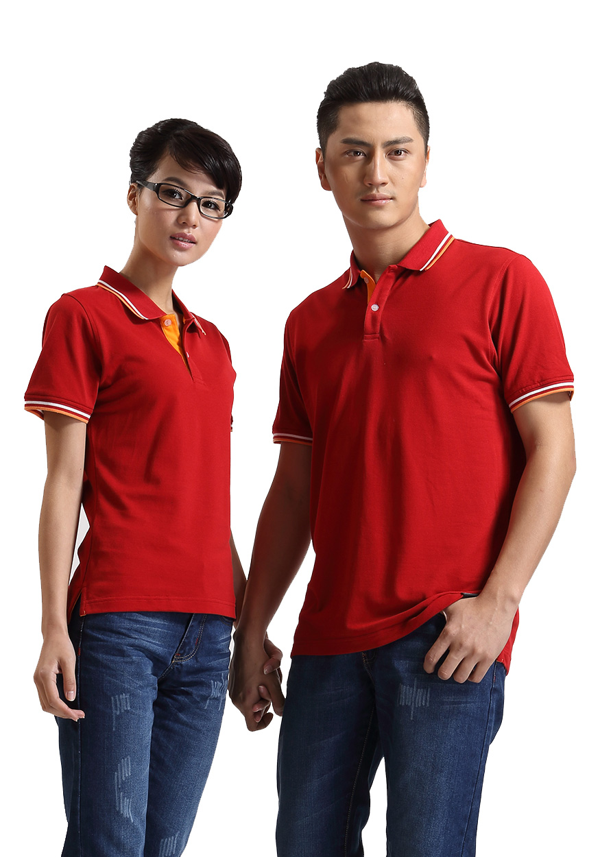 > 大紅色珠地純棉POLO衫,領袖間條撞色,門襟撞色男女款定制