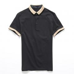 黑色男士翻領(lǐng)短袖T恤衫印制 免費(fèi)寄樣品