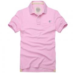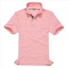 【定制】粉紅色男士翻領短袖T恤衫定制加工