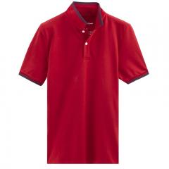 【定制】紅色男士翻領短袖全棉T恤衫 時尚款式來襲