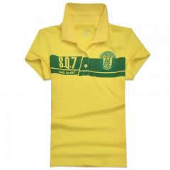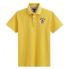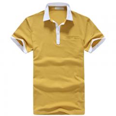 黃色男款全棉翻領(lǐng)短袖T恤衫加工印制
