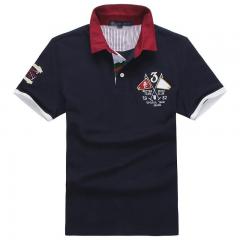 男士翻領(lǐng)短袖T恤衫加工印制 精梭純棉材料