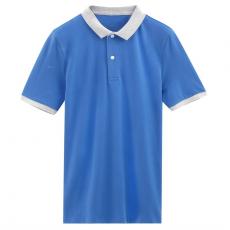 【定制】藍(lán)色撞色衣領(lǐng)款式 男士翻領(lǐng)T恤衫訂制