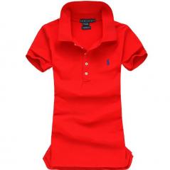 【定制】大紅色女士翻領(lǐng)短袖t恤衫款式,免費設計